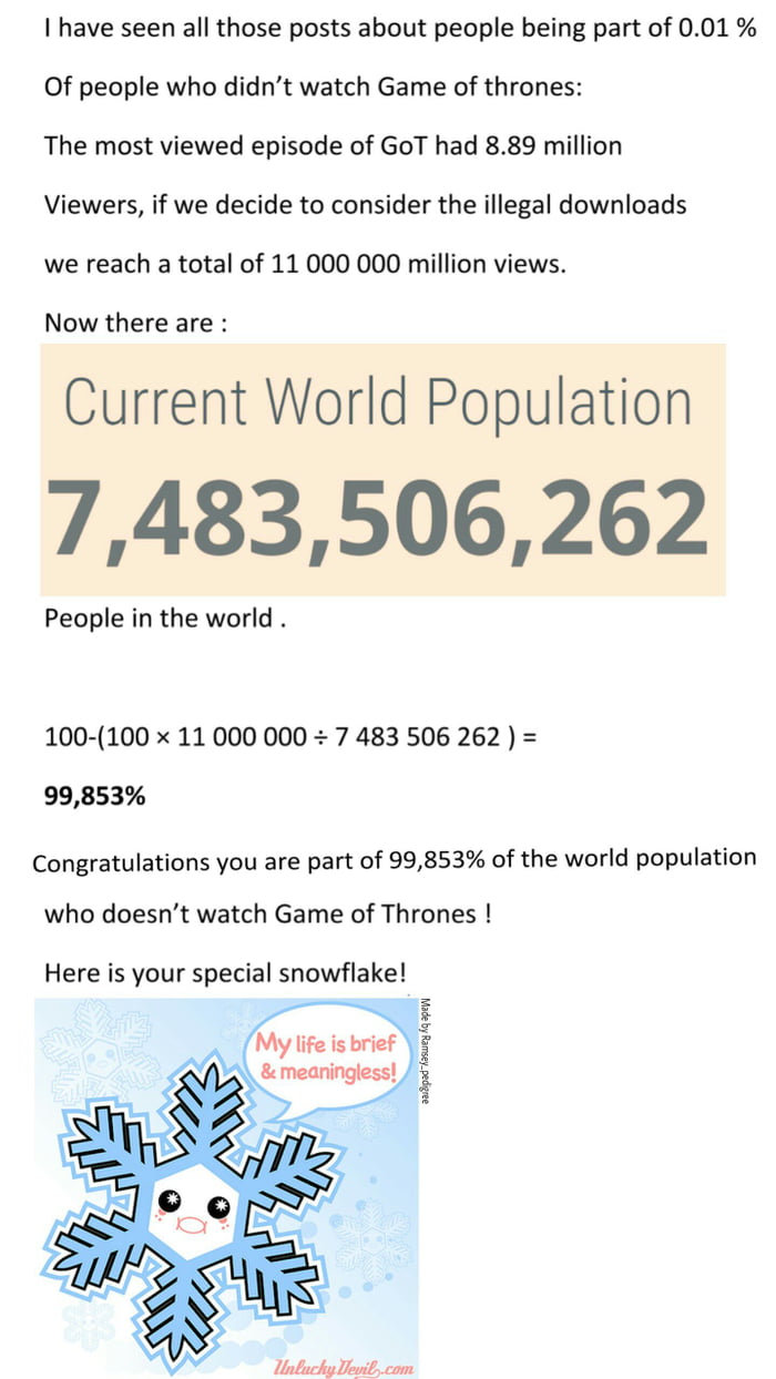 Winter is coming, "special snowflakes" who will not feel special anymore are coming too.