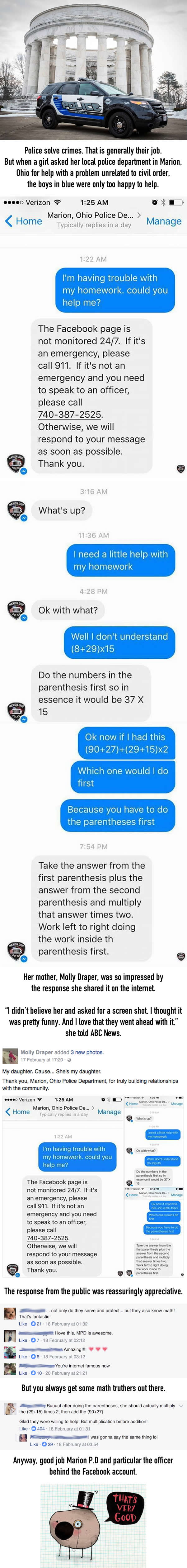 Ohio police department helps girl with math homework